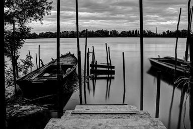 Keywords: Il fiume Po dalle rive di Taglio di Po a tarda sera... sky bw cloud canon river boat nuvole hdr canoniani