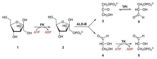 | Keywords: Fructose in glycolysis.svg en metabolism of fructose 1 for entering the glycolysis Fructose-1-phosphate 2 dihydroxyacetone phosphate 3 glyceraldehyde 4 glyceraldehyde 3-phosphate 5 ; fructokinase FK aldolase B ALD-B triosephosphate isomerase TPI triose kinase TK de Metablisierung von Fructose 1 für den Eintritt in die Glykolyse Fructose-1-phosphat 2 Dihydrogenacetonphosphat 3 Glycerinaldehyd 4 Glycerinaldehyd-3-phosphat 5 ; Fructokinase FK Aldolase B ALD-B Triosephosphat-Isomerase TPI Triosekinase TK own Yikrazuul 2009-11-12 Glycolysis Fructose |