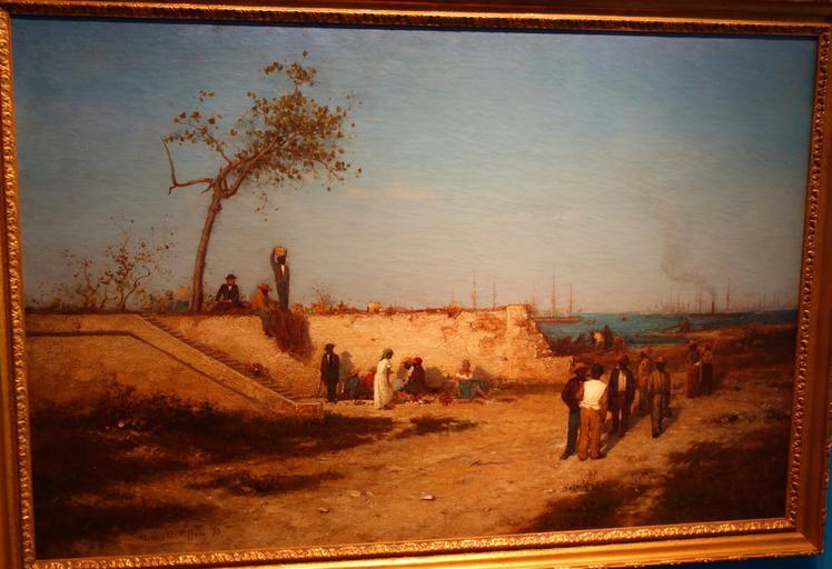 | Keywords: Fruit Vendors Under the Sea Wall at Nassau, New Providence, by Louis Comfort Tiffany, 1870, oil on canvas - New Britain Museum of American Art - DSC09725.JPG Louis Comfort Tiffany 1870 oil on canvas painting Exhibited in the New Britain Museum of American Art New Britain Connecticut USA This artwork is in the public domain because the artist died more than 70 years ago 2013-06-27 13 15 20 own Daderot PD-old-70-1923 cc-zero Uploaded with UploadWizard Paintings by Louis Comfort Tiffany Paintings in the New Britain Museum of American Art 1870 oil on canvas paintings in the United States |