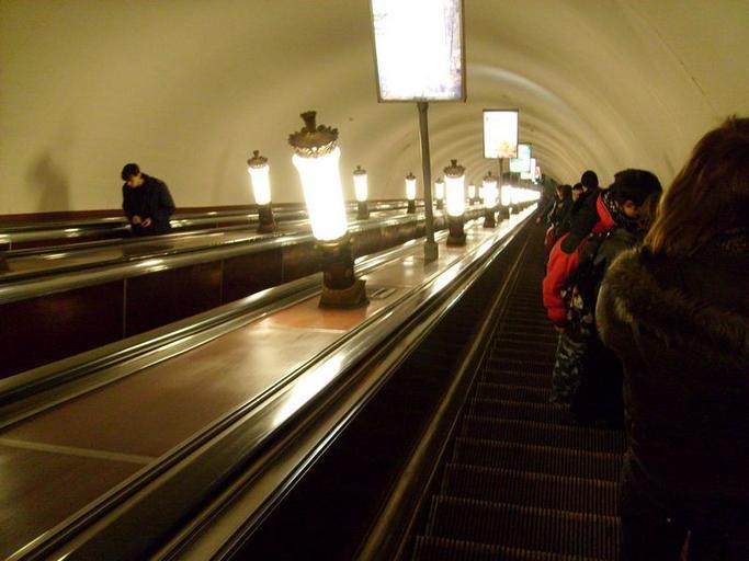 Keywords: Frunzenskaya station escalator.JPG Эскалато станция Ф унзенская Пете бу гского мет ополитена Own 2008 Sasha Krotov Pedestal lanterns Lanterns in Russia pedestal Escalators of Saint Petersburg Metro Lighting Frunzenskaya Petersburg Metro