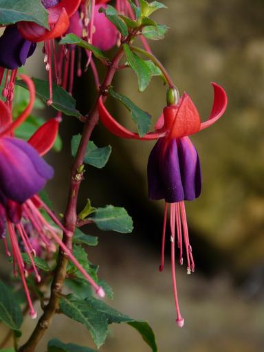 Keywords: fuchsia evening primrose greenhouse ornamental plant container plant balcony plant sepals petals red purple flower stalks ovary plant flower flora