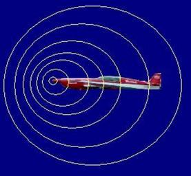 Keywords: Fuente Subsónica.JPG En la imagen se aprecia el comportamiento de los frentes de onda emitidos por un avión cuando este viaja a velocidad subsónica 2006-07-10 own assumed FedeT Aerodynamics diagrams Mach number