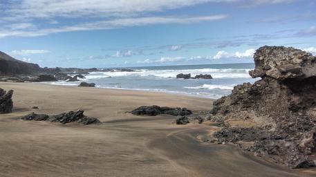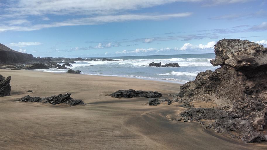 Keywords: fuerteventura canary islands beach uninhabited wild landscape the waves rocks the stones spain