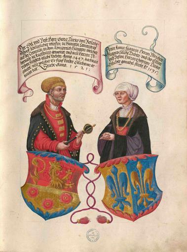 | Keywords: Fugger Ehrenbuch 057.jpg Geheimes Ehrenbuch der Fugger hergestellt in der Werkstatt Jörg Breu d J 1545 “1549<br /> Portrait- und Wappendarstellung http //daten digitale-sammlungen de/~db/0004/bsb00042105/images/ 1545 “1549 workshop PD-old-100 Geheimes Ehrenbuch der Fugger Portraits in Geheimes Ehrenbuch der Fugger Coats of arms in Geheimes Ehrenbuch der Fugger Coats of arms of Fugger von der Lilie family Coats of arms of Thurzó family | ||||