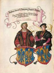 | Keywords: Fugger Ehrenbuch 072.jpg Geheimes Ehrenbuch der Fugger hergestellt in der Werkstatt Jörg Breu d J 1545 “1549<br /> Portrait- und Wappendarstellung http //daten digitale-sammlungen de/~db/0004/bsb00042105/images/ 1545 “1549 workshop PD-old-100 Geheimes Ehrenbuch der Fugger Portraits in Geheimes Ehrenbuch der Fugger Coats of arms in Geheimes Ehrenbuch der Fugger Coats of arms of Fugger von der Lilie family | ||||