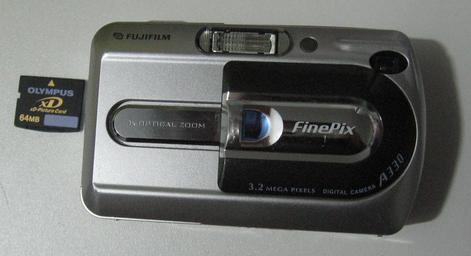 Keywords: Fujifilm FinePix A330 06.jpg en Fujifilm FinePix A330 digital camera with xD card at its side Own Luis Dantas 2008-11-04 Taken with Canon PowerShot A520 Fujifilm FinePix A330