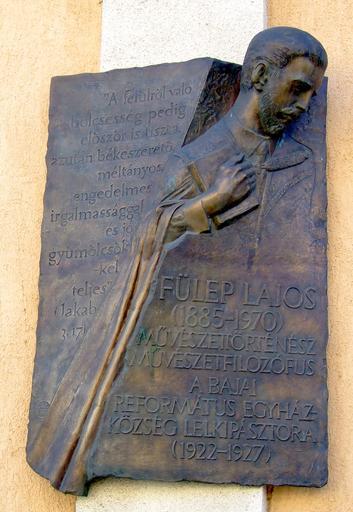 Keywords: Fülep Lajos Baja.JPG Fülep Lajos emléktáblája a bajai református templom falán Csíkszentmihályi Róbert alkotása 1997 own photo by uploader photo 2007 ; relief 1997 own photo ; sculptor Róbert Csíkszentmihályi Reliefs in Baja Plaques in Baja Plaques to teachers in Hungary Plaques to scientists in Hungary Plaques to priests in Hungary Lajos Fülep Róbert Csíkszentmihályi |