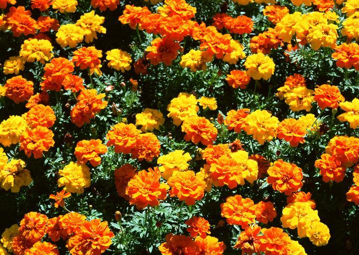 Keywords: marigold flower blossom closeup natural vibrant green floral spring petal yellow field botanical growing bright orange summer bloom blurred season garden growth plant blur beautiful background fresh wild nature