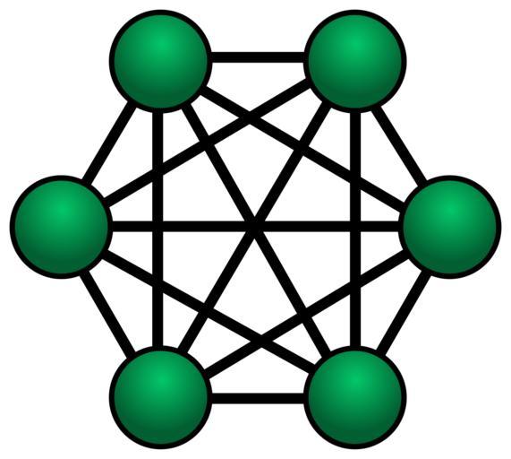 Keywords: Fully-connected mesh network.svg en A simple diagram of a fully-connected mesh topology; everything is connected to everything 2014-06-11 14 49 42 NetworkTopology-FullyConnected png GKFX GKFX en Uploaded with UploadWizard Full network topologies Complete graph K6 |
