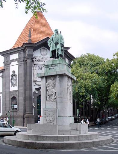 Keywords: Funchal statue Zarco.jpg Joao Goncalves Zarco founded Funchal Madeira in 1425 and his statue stands in the middle of the town centre Looking direction NW 32 38 51 9 N 16 54 34 8 W scale 3000_heading NW own 2001-10-24 Wouter Hagens João Gonçalves Zarco by Francisco Franco 1927 Edifício do Banco de Portugal Funchal 2001 in Funchal |