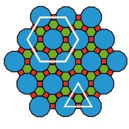 | Keywords: Fund un prim cell.svg en A fundamental unit triangle and a primitive cell hexagon in a truncated trihexagonal tiling The tiling can be generated from the triangle by using translations and rotations whereas it can be generated from the hexagon by using only translations own T Yamaguchi 2010-10-04 Aperiodic sets of tiles |