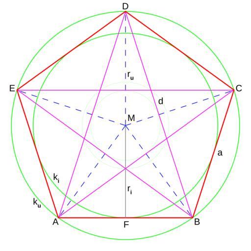 | Keywords: Fünfeck.svg Regelmäßiges Fünfeck mit Diagonalen Inkreisen Umkreisen und Radien Transferred from de WP ; transfer was stated to be made by sarang <br/> Original text Selbst erstellt 2007-05-18 <br/> 2007 05 18 first version ; 2011 02 09 last version Augiasstallputzer <br> Original uploader was Augiasstallputzer at de WP Later version s were uploaded by Sarang at de WP Released into the public domain by the augiasauthor SimplSVG PD-release page remains http //de wikipedia org/w/index php title File 3AF C3 BCnfeck svg here All following user names refer to de Wikipedia 2011-02-09 13 00 Sarang 780×780× 1974 bytes <nowiki>Es ist eine originelle Idee einen Kreis aus 96 Polygonen zusammenzusetzen </nowiki> 2007-05-18 21 15 Augiasstallputzer 780×780× 25691 bytes <nowiki> Andere Versionen </nowiki> versions remain at de WP Pentagrams |