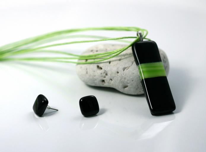 Keywords: fused glass glass jewellery earrings accessories necklace fashion pendant black green jewelry