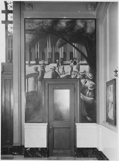 Keywords: FWA-PBA-Paintings and Sculptures for Public Buildings-Saratoga New York-artist Guy Peine Du Bois-painting of men and... - NARA - 195797.tif Scope and content General notes 195797 Local identifier Roosevelt Franklin D Franklin Delano 1882-1945 Franklin D Roosevelt Library NLFDR 4079 Albany Post Road Hyde Park NY 12538-1999 Mural Saratoga in Racing Season 1937 by Guy Pène du Bois for the United States Post Office Saratoga Springs New York More information at http //livingnewdeal org/projects/post-office-murals-saratoga-springs-ny/ The Living New Deal NARA-cooperation PD-USGov FWA-PBA Paintings and Sculptures for Public Buildings Treasury Relief Art Project Guy Pène du Bois |