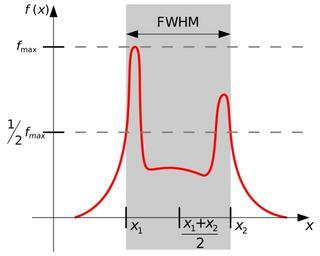 Keywords: FWHM 1.svg en Subsidiary Full Width at Half Maximum explanation own Kirill Zaytsev 2014-04-20 FWHM png SVG line charts