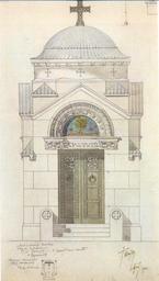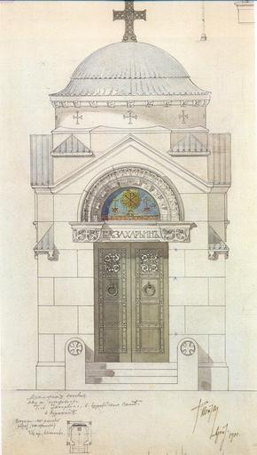 | Keywords: Fyodor Schechtel. Zakharyin tomb. 1900.jpg Фёдо Шехтель П оект часовни на могиле Заха ьина в Ку кино Fyodor Schechtel Draft of the Zakharyin crypt in Kurkino http //community livejournal com/arch_heritage/243546 html 1900 en Fyodor Schechtel signature visible in lower right PD-Old-70 thumb left 2010 photo Church of the Theotokos of Vladimir in Kurkino Chapels in Moscow Fyodor Schechtel Built in 1900 Chapels of Russia in art | ||||