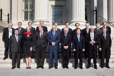 | Keywords: G7 Finance ministers.jpg en G7 finance ministers front row and central bank governors back row gather for a group picture during meetings at the U S Treasury Department in Washington April 11 2008 Front row L-R Canadian Finance Minister Jim Flaherty French Finance Minister Christine Lagarde German Finance Minister Peer Steinbrueck U S Treasury Secretary Henry Paulson Italy's Finance Minister Tommaso Padoa-Schioppa Japan's Finance Minister Fukushiro Nukaga UK Chancellor of the Exchequer Alistair Darling and Jean-Claude Juncker Chairman of the Eurogroup Back row L-R IMF Managing Director Dominique Strauss-Kahn Bank of Canada Governor Mark Carney Bank of France Governor Christian Noyer Bundesbank President Axel Weber Federal Reserve Chairman Ben Bernanke Bank of Italy Governor Mario Draghi Bank of Japan Governor Masaaki Shirakawa Bank of England Governor Mervyn King European Central Bank President Jean-Claude Trichet and World Bank President Robert Zoellick http //www imf org/external/photo/showall aspx g 72 IMF Photographic archives IMF Staff Photograph/Stephen Jaffe 2008-04-11 PD-imf org Group of Seven Robert Zoellick 20080411 Jim Flaherty 20080411 Christine Lagarde 20080411 Henry Paulson 20080411 Tommaso Padoa-Schioppa 20080411 Fukushirō Nukaga 20080411 Alistair Darling 20080411 Jean-Claude Juncker in 2008 20080411 Dominique Strauss-Kahn 20080411 Mark Carney 20080411 Christian Noyer 20080411 Axel Weber 20080411 Ben Bernanke 20080411 Mario Draghi 20080411 Masaaki Shirakawa 20080411 Mervyn King 20080411 Jean-Claude Trichet 20080411 Peer Steinbrück 200804112112 Taken with Canon EOS-1Ds Mark III ImageNote 1 693 462 129 168 2100 1404 2 Peer Steinbrück ImageNoteEnd 1 |