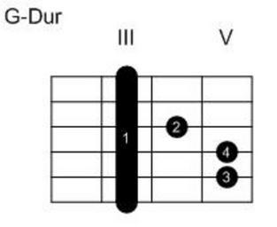 Keywords: G-Dur Barré.jpg Eigenanfertigung 2005-11-05 own assumed Red Rooster Guitar chords in standard tuning