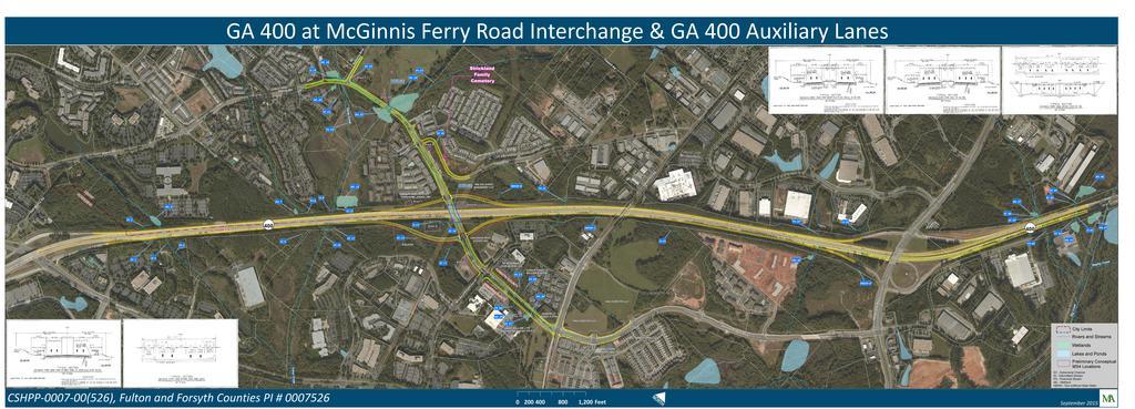 Keywords: This is a proposed interchange for McGinnis Ferry Road at Georgia 400. The project would also include auxiliary lanes on GA 400 between the Windward Pkwy ramps and McGinnis Ferry ramps. Auxiliary lanes would also be added to GA 400 between the McGinnis Ferry ramps and the McFarland Parkway ramps. No construction date has been set. |