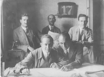 | Keywords: Gábor Kornél Tolnai, own workshop, Budapest, 1931-1.jpg en Diploma engineer Gábor Kornél Tolnai in his precision-tool workshop for mechanic with some of his engineering workers in Mester utca 13 in Budapest Hungary Kornél Tolnai himself is to left Photography from 1931 sv Diplomingenjör Gábor Kornél Tolnai i sin finmekaniska verkstad med några av verkstadsarbetarna på Mester utca 13 i Budapest Ungern Kornél Tolnai är längst till vänster Fotografi från 1931 1931 Own photo author other versions Custom license marker 2015 01 16 PD-old Uploaded with UploadWizard Gábor Kornél Tolnai |