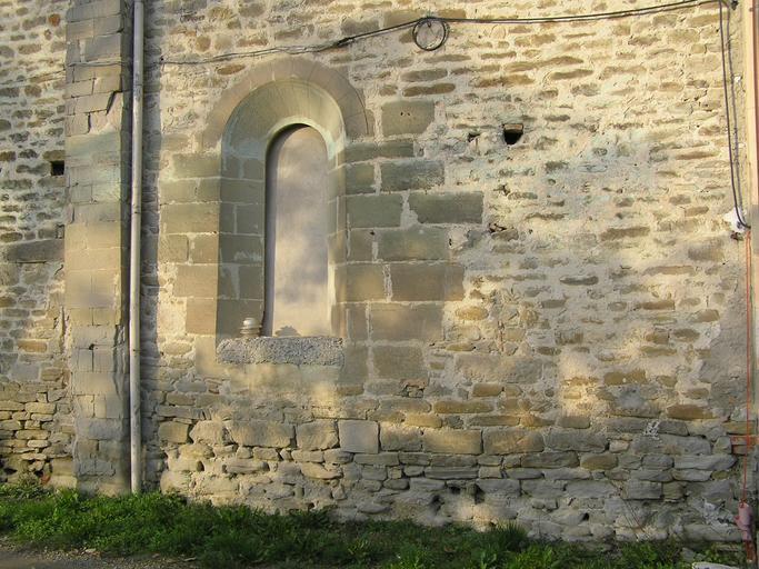 Keywords: Galeata Pantano Fianco Finestra.JPG Fianco destro di Santa Maria in Pantano Galeata in cui si riconosce a sinistra una lesena di sostegno in basso la muratura originaria della fiancata ed un po' piu su i conci squadrati di arenaria che formano la monofora probabilmente rimaneggiata nell'arco Il tutto appartenente alla originaria chiesa romanica Own Icco80 Santa Maria in Pantano Galeata