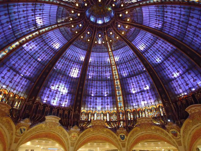 Keywords: galeries lafayette ceiling stained glass windows glass vault dome blue