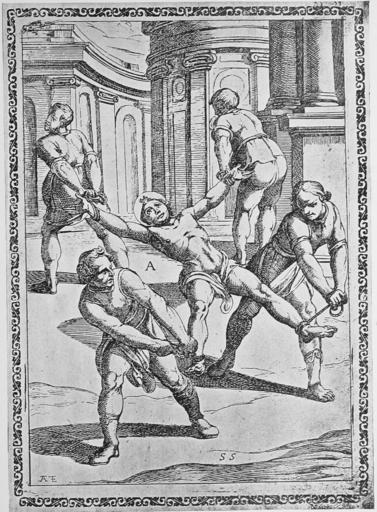 Keywords: Gallonio Tortures 1591 p12.jpg Woodcut by Tempesta showing a torture/execution scene of martyrs from Gallonio's Tortures and Torments of the Christian Martyrs «Trattato degli instrumenti di martiro e delle varie maniere di martoriare usate da' gentili contro christiani descritti et intagliate in rame; opera di Antonio Gallonio» first publication Rome 1591 / scans from a 1904 reprint woodcut by Antonio Tempesta Reproduction of a painting that is in the public domain because of its age PD-old-100 Trattato degli instrumenti di martiro |