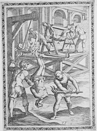 Keywords: Gallonio Tortures 1591 p19.jpg Woodcut by Tempesta showing a torture/execution scene of martyrs from Gallonio's Tortures and Torments of the Christian Martyrs «Trattato degli instrumenti di martiro e delle varie maniere di martoriare usate da' gentili contro christiani descritti et intagliate in rame; opera di Antonio Gallonio» first publication Rome 1591 / scans from a 1904 reprint woodcut by Antonio Tempesta Reproduction of a painting that is in the public domain because of its age PD-old-100 Trattato degli instrumenti di martiro |