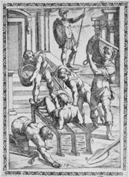 Keywords: Gallonio Tortures 1591 p21.jpg Woodcut by Tempesta showing a torture/execution scene of martyrs from Gallonio's Tortures and Torments of the Christian Martyrs «Trattato degli instrumenti di martiro e delle varie maniere di martoriare usate da' gentili contro christiani descritti et intagliate in rame; opera di Antonio Gallonio» first publication Rome 1591 / scans from a 1904 reprint woodcut by Antonio Tempesta Reproduction of a painting that is in the public domain because of its age PD-old-100 Trattato degli instrumenti di martiro |