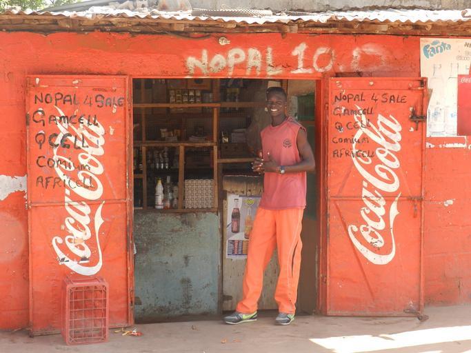 Keywords: gambia locals street poverty man store business small shop local regional resident