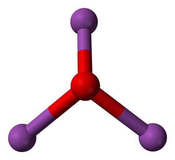 Keywords: Gamma-bismuth-trioxide-O1-coordination-3D-balls.png Ball-and-stick model of the trigonal pyramidal coordination of oxygen 1 by three bismuths in the crystal structure of the gamma phase of bismuth trioxide γ-Bi<sub>2</sub>O<sub>3</sub> X-ray crystallographic data from cite journal Acta Cryst B48 5 October 1992 604-609 10 1107/S0108768192003847 Structural features of γ-phase Bi<sub>2</sub>O<sub>3</sub> and its place in the sillenite family S F Radaev V I Simonov Yu F Kargin Model constructed in http //www crystalmaker com/ CrystalMaker 8 1 Image generated in http //accelrys com/products/discovery-studio/visualization/discovery-studio-visualizer html Accelrys DS Visualizer Own 2009-01-24 Ben Mills Benjah-bmm27 Images by Ben Mills Bismuth trioxide |