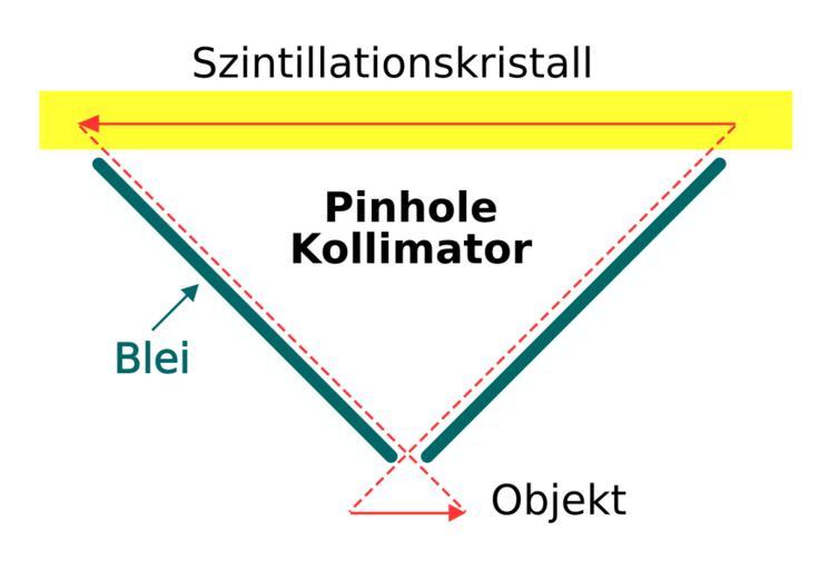 | Keywords: Gamma Camera Pinhole Collimator-de.svg Illustration of a pin-hole collimator being used to image a hypothetical arrow-shaped radioactive source Based on a public domain image by Kieran Maher see original image own 2006-08-25 Dirk Hünniger public domain Gamma camera SVG diagrams in German |