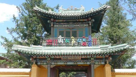 Keywords: Gandan Monastery 03.JPG en Gandan Monastery in Ulan Bator own Brücke-Osteuropa 2009-06-24 Gandan Monastery Gates in Mongolia Roofs in Mongolia