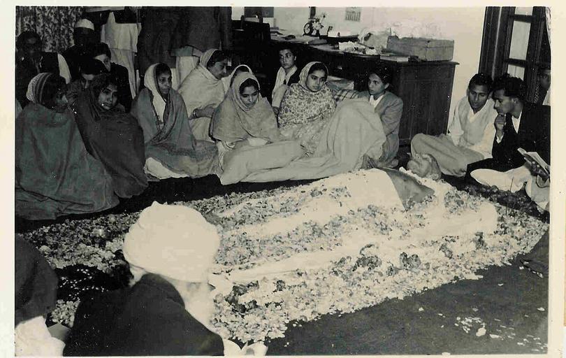 Keywords: photo border The body of Mahatma Gandhi lying in state in Birla House, New Delhi on January 31, 1948. Source: UH Manoa Library The body of Mahatma Gandhi lying in state in Birla House, New Delhi on January 31, 1948. Source: UH Manoa Library |