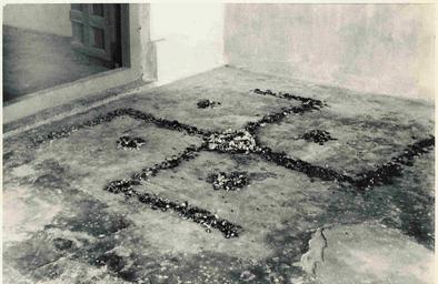 Keywords: "The spot in Porbander where Mahatama Gandhi was born." In Hinduism, the swastika represents the four directions. Facing right it represents the evolution of the universe; facing left it represents the involution of the universe. Hindus consider the swastika both holy and auspicious and use it to decorate cultural items. Source: UH Manoa Library "The spot in Porbander where Mahatama Gandhi was born." In Hinduism, the swastika represents the four directions. Facing right it represents the evolution of the universe; facing left it represents the involution of the universe. Hindus consider the swastika both holy and auspicious and use it to decorate cultural items. Source: UH Manoa Library |