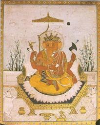 Keywords: Ganesha Nurpur miniature circa 1810 Dubost p64.jpg Four-armed Gaṇeśa Miniature of Nurpur school circa 1810 Museum of Chandigarh Source This work is reproduced and described in Martin-Dubost Paul 1997 Gaņeśa The Enchanter of the Three Worlds Mumbai Project for Indian Cultural Studies ISBN 81-900184-3-4 p 64 which describes it as follows On a terrace leaning against a thick white bolster Gaṇeśa is seated on a bed of pink lotus petals arranged on a low seat to the back of which is fixed a parasol The elephant-faced god with his body entirely red is dressed in a yellow dhoti and a yellow scarf fringed with blue Two white mice decorated with a pretty golden necklace salute Gaṇeśa by joining their tiny feet together Gaṇeśa counts on his rosary in his lower right hand; his two upper hands brandish an axe and an elephant goad; his fourth hand holds the broken left tusk en Category Ganesh Transferred from http //en wikipedia org en wikipedia 2007-07-03 Original uploader was Buddhipriya at http //en wikipedia org en wikipedia PD-ART PD-art original upload log page en wikipedia Ganesha_Nurpur_miniature_circa_1810_Dubost_p64 jpg 2007-07-03 22 34 Buddhipriya 838×1050×8 416650 bytes <nowiki>Four-armed Gaṇeśa Miniature of Nurpur school circa 1810 Museum of Chandigarh This work is reproduced and described in Martin-Dubost Paul 1997 Gaņeśa The Enchanter of the Three Worlds Mumbai Project for Indian Cultural Studies ISBN 81-900</nowiki> PD-Art Nurpur India Paintings of Ganesha Illuminated manuscripts created in India Elephant goad |