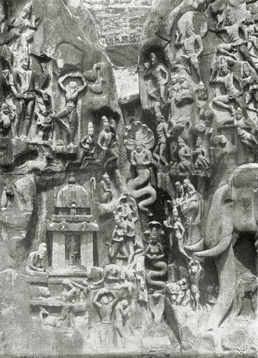 | Keywords: Ganga Mahabalipuram.jpg en Relief of the Descend of the Ganga in Mahabalipuram also Mamallapuram India; the complete relief measures 9 x 27 m de Relief Herabkunft der Ganga in Mahabalipuram auch Mamallapuram Indien ; das gesamte Relief misst 9 x 27 m fr Bas-relief de la Descente du Gange à Mahâballipuram appelée aussi Mamallapuram Inde; Le bas-relief mesure 9 x 27 m dans sa totalité ---- from Indische Kunst Berlin 1925 ---- PD-old Descent of the Ganges | ||||