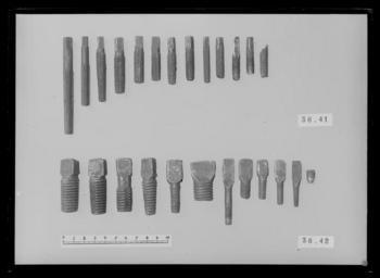 Keywords: Gängtappar, 13 stycken - Livrustkammaren - 78063.tif Ur Johan Rings bössmakarverkstad 13 stycken gängtappar av stål i olika storlekar alla med fyrsidigt huvud som övergår i en gängad cylinder med fyra längsgående skåror Allt förvaras i en brun pappask med etikett som vittnar om tidigare innehåll av fotografiska glasplåtar original caption ca 1900 size mm 7 minsta size mm 11 största g 255 m ask LRK Johan Ring bössmed place of origin original filename LN_B07309_B10189 54315 inventory number LRK 18366 78063 CC0 Gängtappar 13 stycken - Livrustkammaren - 78063-negative tif Threading tools Media contributed by LSH dim-with multiple size templates Media contributed by LSH 2013-10 |