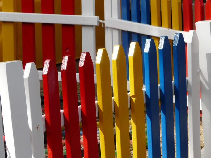 Keywords: garden fence paling colorful color wood red yellow blue painted fencing limit