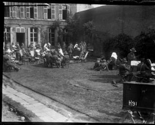 Keywords: blackandwhite monochrome outdoor black and white General view of the garden party at the New Zealand Stationary Hospital, probably at Hazebrouck. Looking towards hospital building. Army orchestra playing on right. Photograph taken 24 June 1917 by Henry Armytage Sanders. Inscriptions: Inscribed - Photographer's title on negative -bottom right: H91. Quantity: 1 b&w original negative(s). Physical Description: Dry plate glass negative 4 x 5 inches Garden party in the grounds of the New Zealand Stationary Hospital, France. Royal New Zealand Returned and Services' Association :New Zealand official negatives, World War 1914-1918. Ref: 1/2-012802-G. Alexander Turnbull Library, Wellington, New Zealand. natlib.govt.nz/records/22338095 General view of the garden party at the New Zealand Stationary Hospital, probably at Hazebrouck. Looking towards hospital building. Army orchestra playing on right. Photograph taken 24 June 1917 by Henry Armytage Sanders. Inscriptions: Inscribed - Photographer's title on negative -bottom right: H91. Quantity: 1 b&w original negative(s). Physical Description: Dry plate glass negative 4 x 5 inches Garden party in the grounds of the New Zealand Stationary Hospital, France. Royal New Zealand Returned and Services' Association :New Zealand official negatives, World War 1914-1918. Ref: 1/2-012802-G. Alexander Turnbull Library, Wellington, New Zealand. natlib.govt.nz/records/22338095