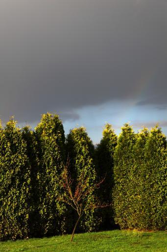 Keywords: garden tree dark clouds landscape nature sky the background view trees dark clouds screen grass green after the rain