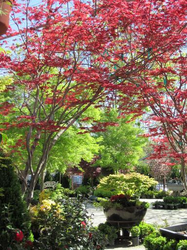 MAKE A MEME View Large Image gardens trees autumn pink red fall leaves green plants seasons changing seasons seasonal ornamental decorative leafy branches potted plants bright day
