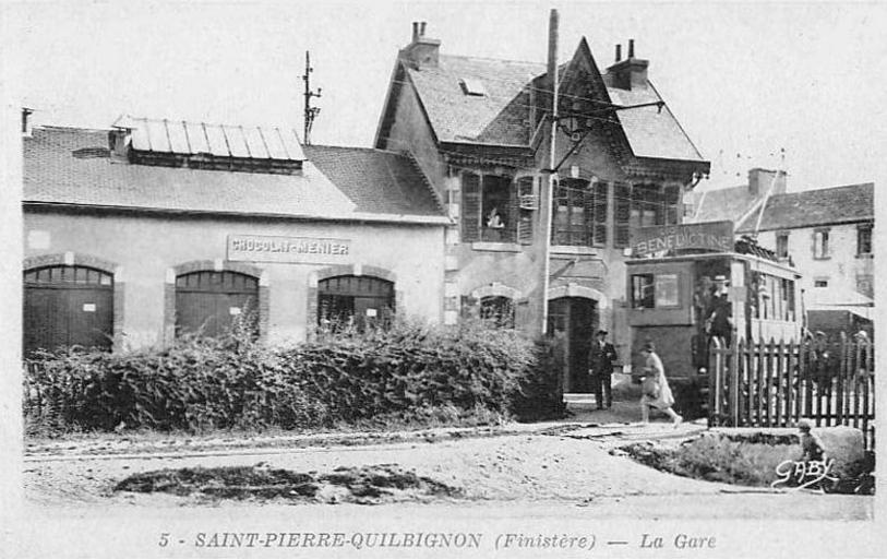 Keywords: Gare de Saint-Pierre-Quilbignon.jpg fr La gare de Saint-Pierre-Quilbignon sur le tramway de Brest au Conquet Finistère France Collection personnelle Collection personnelle 1910 PD-old Chemins de fer départementaux du Finistère Ancien tramway de Brest |