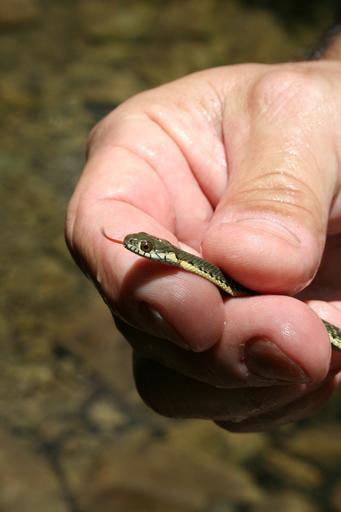 Keywords: garter snake snake holding hand animal serpent wildlife reptile holding snake creature small