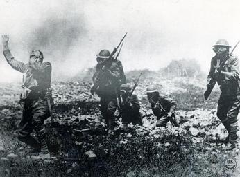 | Keywords: outdoor NRL 15502:   American Expedition Forces.   Original caption, “Danger from gas attacks was impressed on our men by every means to enforce obedience to the Army orders concerning the carrying and wearing of gas masks.   This exhibition was staged for the benefit of soldiers by Major Everts Tracy, C.E.    In 1918, from 20 to 30 percent of all our battle casualties were due to gas.”    Photograph from 1918.   NHHC Photograph Collection, NR&L 15502.   NRL 15502:   American Expedition Forces.   Original caption, “Danger from gas attacks was impressed on our men by every means to enforce obedience to the Army orders concerning the carrying and wearing of gas masks.   This exhibition was staged for the benefit of soldiers by Major Everts Tracy, C.E.    In 1918, from 20 to 30 percent of all our battle casualties were due to gas.”    Photograph from 1918.   NHHC Photograph Collection, NR&L 15502. |