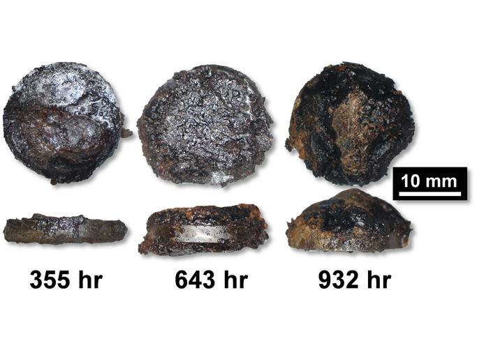 | Keywords: Gas Tank Corrosion (15197952422).jpg Optical micrographs of severe corrosion on steel alloy samples exposed to ethanol and acetic acid vapors -- conditions typical of underground gas storage tanks -- after 355 hours 643 hours and 932 hours See also http //www nist gov/mml/acmd/corrosion-072914 cfm www nist gov/mml/acmd/corrosion-072914 cfm Credit NIST Disclaimer Any mention of commercial products within NIST web pages is for information only; it does not imply recommendation or endorsement by NIST Use of NIST Information These World Wide Web pages are provided as a public service by the National Institute of Standards and Technology NIST With the exception of material marked as copyrighted information presented on these pages is considered public information and may be distributed or copied Use of appropriate byline/photo/image credits is requested https //www flickr com/photos/usnistgov/15197952422/ Gas Tank Corrosion 2014-07-28 12 38 https //www flickr com/people/63059536 N06 National Institute of Standards and Technology PD-USGov National Institute of Standards and Technology https //flickr com/photos/63059536 N06/15197952422 2016-09-07 01 30 48 United States Government Work Uncategorized 2016 October 23 |