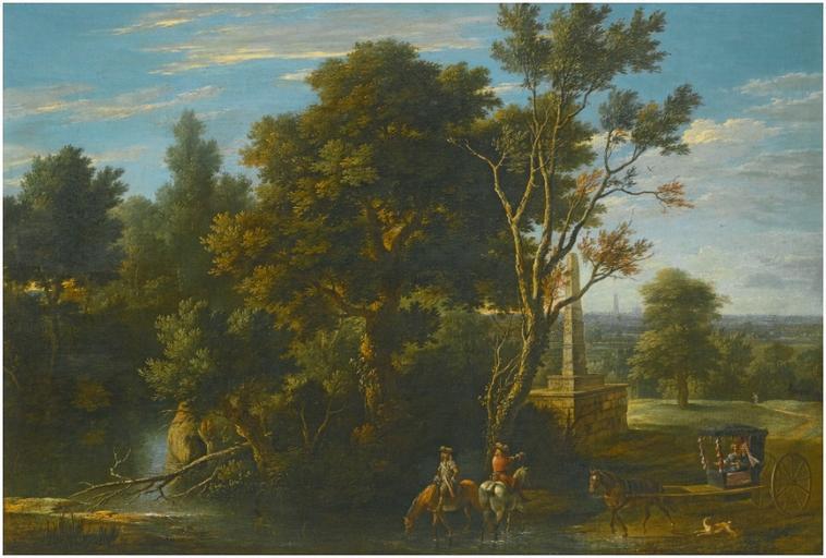 Keywords: Gaspar de Witte - A Landscape with Travellers Stopping to Rest by a River.jpg Artwork creator Gaspar de Witte en A Landscape with Travellers Stopping to Rest by a River 1681 http //www sothebys com/en/auctions/ecatalogue/lot 342 lotnum html/2012/old-master-british-paintings-day-sale-l12037 Oil canvas cm 65 5 94 5 Sold at Sotheby's on 6 December 2012 in London lot 342 signed and dated centre right on the base of the obelisk ANo / D / LXXXI / GASPAR/ DE / WITTE F PD-old-100 Gaspar de Witte 17th-century landscape paintings Baroque paintings of landscapes Oil paintings of landscapes