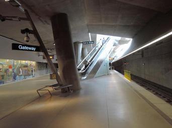 Keywords: Gateway T platform & escalator jeh.jpg en Gateway station platform 2013-05-20 13 37 59 own Jim henderson 40 26 32 4 N 80 0 15 3 W heading SSE cc-zero Uploaded with UploadWizard Gateway PAT station Train station escalators in the United States |