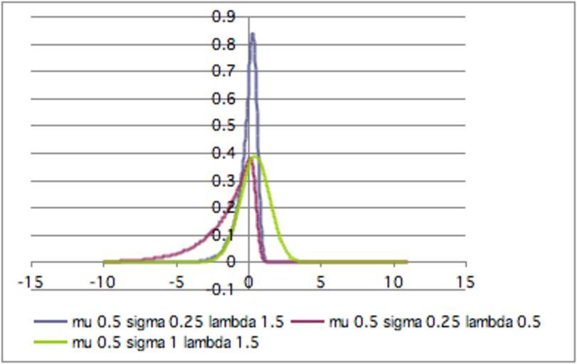 Keywords: GaussianMinusExponential PDF.png en This is the PDF of the Gaussian Minus Exponential Distribution own Liam herron date Probability distributions