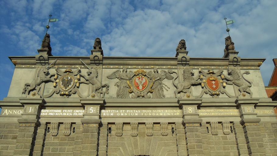 Keywords: Gdańsk Brama Wyżynna 2012 – fasada zachodnia.jpg pl Gdańsk Brama Wyżynna po renowacji fasada zachodnia own Artur Andrzej 2012-06-13 Cc-zero High Gate in Gdańsk Reliefs in Główne Miasto Reliefs of coats of arms of Gdańsk 2012 in Gdańsk